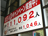(写真:握手した人数は111,092人。事務所前にはボードが掲示された)