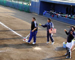 大国: 今年は、去年のレギュラーで主力だった3選手が退部し、新人が4人入りました。メンバーが大きく入れ替わっているので、オープン戦では若い選手にどんどん実戦の舞台を経験させたかった。新人をとにかく使っていこう、と。マドンナカップ(3月13〜16日)はほとんど指示を出さずに好きなようにやらせて、今の自分のたちの実力を分かってもらった上で、トヨタカップ(4月6〜8日)に入りました。後半の2試合の相手は、豊田自動織機と日立ソフトウェアという、1部リーグの上位チーム。両チームを相手に、3−1、2−0と負けはしましたが、しっかり課題を与えて取り組んだ中で、守備がそこそこできたのと、バッテリーが修正できたのは良かった。思うように点数は取れませんでしたが、内容的には上向きになっていると思います。