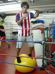 さらに阪東は新しい練習を積極的に取り入れている。普段の2時間半から3時間の練習のうち30分くらいの時間を「体幹トレーニング」に費やす。阪東が簡単にやってみせるバランスボールの上に立ってのシャドーボクシングは素人がやるのは想像以上に難しい。