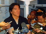 (写真:数多くの報道陣に囲まれる姿はヤンキースクラブハウスの名物にもなった)