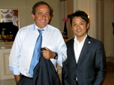 (写真:決勝後に会ったUEFAミシェル・プラティニ会長と)