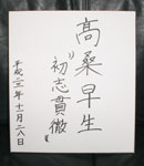 ☆プレゼント☆高桑早生選手の直筆サイン色紙を2名様にプレゼント致します。ご希望の方はより、本文の最初に「高桑早生選手のサイン色紙(あるいは本)希望」と明記の上、住所、氏名、年齢、連絡先(電話番号)、このコーナーへの感想や取り上げて欲しい選手などがあれば、お書き添えの上、送信してください。応募者多数の場合は抽選とし、当選は発表をもってかえさせていただきます。たくさんのご応募お待ちしております。