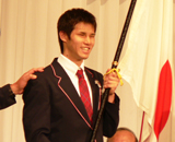 (写真:「必ずメダルを持って日本に戻ってきたい」と意気込む旗手・木村敬一)「初めて出場した前回の北京では5位が最高成績だったので、今回は何としてもメダルを獲って帰ってきたいと思っている。北京の時とは(パラリンピックの)重みが違うと感じている。2回目ということで結果を求められる。さらに旗手ということで余計に重要な責任があると思っている。ただ、名誉なことなので、自分にプレッシャーをかけていきたい。それでいい結果を残せれば、もっとよりよいものになるのではないかと思っている。開会式では選手団の誇りをもって、胸を張って入場したい」(木村)