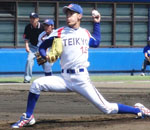 エースとしての存在 投手を中心に最少失点で抑えて競り勝つ。これが今年の帝京大学の野球だ。チームの大黒柱はサウスポーの加美山晃士朗投手。3年秋にはチーム最多の4勝を挙げ、最終学年の今年はエースとしての自覚も十分だ。シーズン前から高い評判を得ていた加美山投手。3月のオープン戦では、今秋のプロ野球ドラフト会議の目玉として注目されている東浜巨投手(亜細亜大)と投げ合い、1−0で投げ勝っている。この勝利は加美山投手自身、チームの結束力を確信した試合でもあった。