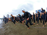 連休最中の9月16日、普段は家族連れなどで賑わうお台場のビーチがウエットスーツ姿の人で溢れかえっていた、通常は遊泳禁止となっているこのビーチで開催される「東京アクアスロン2012」の参加者たちだ。「アクアスロン」とは、水泳とランニングの複合競技の名称で、これに自転車が加わると3つで「トライ」、そう「トライアスロン」となるわけだ。なので、アクアスロンの参加者もトライアスロン愛好者や、トライアスロン参加の準備段階という方が多い。休日のお台場がその参加者たちのエネルギーに溢れていた。