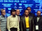 (写真: フレディ・ローチ(左端)、ナチョ・ベリスタイン(右端)という両トレーナーまで含め、4度目の対戦だけにお馴染みの顔ぶれとなった感がある) 加齢に加え、政治活動が忙しくなったことなどから、ブラッドリー戦の前にはパッキャオのモチベーション低下が噂された。案の定、その一戦での出来は芳しくなかった。さらに今回も当初は11月10日に予定されたファイトを12月8日にまで延期し、再びボクシングへの意欲が疑われることにもなった。