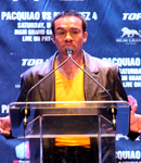 12月8日、ラスベガスにて、WBO世界スーパーライト級王者ファン・マヌエル・マルケスと対戦する(試合は147パウンドのウェルター級リミット)。この2人は2004年、08年、昨年とすでに3度も激突しており、いずれも大接戦ながらパッキャオの2勝1分。「またか」と少々うんざりしたような声も聞こえてくる。