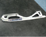 (写真1:フィギュアスケート靴に付けられるブレード)「フィギュアスケートは感覚の競技」と言う坂田。そのため、ささいな変化にも選手たちは敏感に反応する。例えば、靴ひもだ。日本人で初めて4回転ジャンプを成功させた本田武史はこう語っている。
