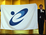 (写真:愛媛スポーツの躍動をイメージしてつくられた新体協旗も披露された)