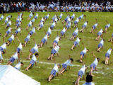 天を指す一糸乱れぬ秋の舞い(写真)(千葉県・小田中準一さん)