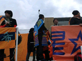 (写真:日本代表サポーターちょんまげ隊のツンさん(中央)も愛媛を応援) また、日本トップレベルの選手たちの力量を直接肌で体感できたことは、選手個々にとって大きな収穫となったのではないかと感じる。目指すべきレベルに到達するには、まだまだ時間が必要だが、その道程を歩む上で、自分たちに何が足りないのか、何が必要なのかを改めて感じ取ることができたと思う。