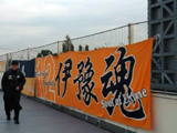 (写真:味の素フィールド西が丘に伊豫魂の横断幕) 試合が始まると早々に、INAC神戸にボールを支配され、長時間、自陣に押し込まれてしまう。想像はしていたが、やはり一方的な展開となった。そんな中、GK上野友紀子選手を中心に愛媛DF陣もよく踏ん張った。しかし、前半14分にDF近賀ゆかり選手、前半19分には、MFチ・ソンヨン選手に得点を奪われてしまった。