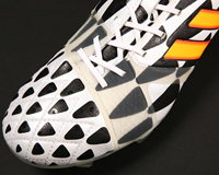 adidasはワールドカップの公式パートナーとして、試合球も供給する。今大会で使用するのは「brazuca(ブラズーカ)」。これまでのボールと比較して最少となる6枚の同一パネルで構成され、バランスや飛行安定性が向上した。当然、ボールが変われば、それに応じたスパイクが求められる。ボールの開発段階から、新球を前提にしたスパイクを製作できるのがadidasのアドバンテージだ。