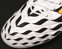 日本代表のキーマン、FW香川真司の足を飾るのは、「adizero(アディゼロ) f50」である。predador instinctが機能性に重きを措くのに対し、adizero f50は“軽さ”をとことん追求したスパイクだ。重量は片足150グラム(FGモデル、27.0センチ)。ドリブルで敵陣を切り裂くスピードスターにはもってこいのアイテムだ。香川の他に日本のFW齋藤学、FWルイス・スアレス(ウルグアイ)、FWアリエン・ロッベン(オランダ)、FWダビド・ビシャ(スペイン)らが着用する。