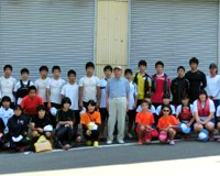 (写真:カヌーの選手たちを激励に訪れた県体協・大亀会長<中央>)