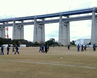 瀬戸大橋の橋脚のそばということで海に近く、強い潮風が吹き抜ける難しいコンディションの中、行われた最終戦。対戦相手は同じ愛媛の松山工業高校である。