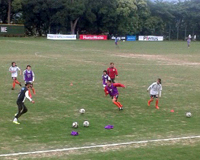 この日の会場は晴天に恵まれ、入場者も多かったのだが、残念なのは球技場のピッチコンディション。芝が枯れている部分や、芝が抜け落ち、土が露出している部分も多く、試合中、足を取られる選手も見受けられた。