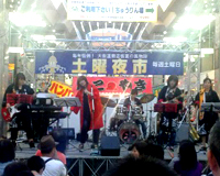 (写真:大街道の特設ステージにてライブを行うL−プリ#の皆さん) 土曜夜市では、通常のアーケード店舗に加え、さまざまな露店やレクリエーションブースが仮設で出店される。特設のステージも設けられ、各種イベントが開催されるなど、毎週土曜日に、これら商店街を訪れると、どことなく“夏祭り”を感じられる松山における風物詩的な催事となっている。