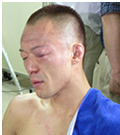 (写真:バレロの強打を浴び、顔に無数の傷が刻み込まれた嶋田)