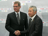 (写真:日本の結束力に期待する大東チェアマン) 昨季王者の名古屋は大卒ルーキーの永井謙佑が、横浜F・マリノスとの開幕戦でいきなり魅せた。1点リードされた66分に投入されると、50メートル5秒8の圧倒的なスピードで相手DF陣を翻弄。後半ロスタイムには、ペナルティエリア内への突破でPKを獲得。それをジョシュア・ケネディが落ち着いて決め、チームは勝ち点1を獲得した。試合後、PKを与えてしまった栗原勇蔵にやられて爽快と言わしめた。