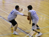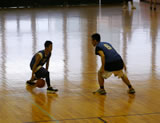 (写真:1対1のテストの様子) 選考の終盤には26人に厳選されたスクリメージが行われた。特に存在感が際立ったのはJBLのアイシンシーホースに所属していた経歴を持つPG澤岻直人選手。落ち着いたゲームメイクで試合の流れをコントロール。トライアウト終了後には、今後に向けて「これからが楽しみ。bjリーグでは相手チームに2メートルを超える選手が3、4人いる。その中でどうプレーしていくかを考えなくてはいけない」と意気込んでいた。