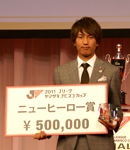 「(03年は田中)達也さんがニューヒーロー賞だった。決勝でもゴールを決めてMVPを獲得した。僕も偉大な先輩に追いつきたい。賞はもらったけど、内容にはまだまだ満足していないので、これからもっとうまくなっていきたいと思う」