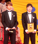 華やかな会場が笑いに包まれたのは得点王が発表された時だった。今季は終盤5試合で4得点を量産したジョシュア・ケネディ(名古屋グランパス)が史上2人目、外国人選手としては初の2年連続得点王を獲得した。しかし、本人は最終節で負傷したため、表彰式を欠席。代役として、同僚の楢崎正剛がケネディのメッセージを読み上げた。