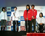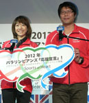 会見場には今回のイベントで応援団長、副団長にそれぞれ任命された高橋尚子と川崎憲次郎も出席。「私たち高橋尚子、川崎憲次郎は2012年、パラリンピアンズを応援することをここに宣言します!」と声高らかに応援宣言を行なった。