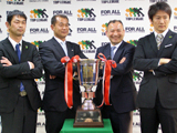 19日からスタートするラグビー・トップリーグのプレーオフトーナメントに出場する4チームの指揮官が13日、都内の日本ラグビー協会に集結して会見を行った。リーグ戦を1位通過し、4季ぶりのVを目指すサントリーサンゴリアスのエディー・ジョーンズ監督は「今季はまだベストのプレーをしているとは言えない。ベストプレーをお見せしたい」と意気込めば、連覇を狙うパナソニックワイルドナイツ(リーグ戦3位)の中嶋則文監督は「一瞬一瞬を大切に、これ以上ないというくらい力を出し切ってほしい」と選手たちに一層の奮起を求めた。