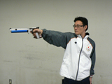 (写真:今年から左手をズボンのポケットに入れるフォームに変えた)二宮: ロンドン五輪では修行の成果が試されます。前回の北京五輪では50メートルが8位入賞、10メートルは18位でした。2度目の五輪をどう戦いますか?