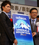 (写真:坂本には「ジョージア エメラルドマウンテンブレンド」1年分と賞金100万円が贈呈された)