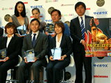 (写真:審査員の有森裕子さんからトロフィーを受け取る太田)「ベスト・オブ・ザ・イヤー」は今年で5回目を迎えた賞で、国内はもとより世界を舞台に高い実績・評価を獲得した製品やサービス、コンテンツを生みだしたチームワークに焦点を当て、毎年、実行委員会の審査を経て表彰している。スポーツ関係では第1回目の2008年にバレーボール全日本女子代表の主将を務めた竹下佳江選手が受賞している。