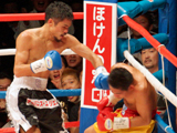 (写真:「上体が柔らかかった」という難敵を内山は連打で仕留めた) 7月の防衛戦は地元・春日部での開催ながら、バッティングで右目上を大きくカット。負傷引き分けに終わった。防衛には成功したものの「試合をしていない感覚だった」と振り返る。それから5カ月。29戦無敗の暫定王者を倒し、、改めて強さを証明した。