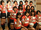 (写真:1月末より米国遠征を行う7人制代表14名も新しいユニホーム姿で勢揃いした) この日の会見に詰めかけた報道関係者は100名以上。7人制代表の浅見敬子ヘッドコーチ(HC)が「私も現役時代は日本代表でプレーしてきたが、考えられなかったこと」と驚くほどの注目度の高さだ。