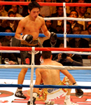 ポイントでもリードし、勝利は見えていたが、王者は相手を仕留めにかかった。動きが鈍ったツニャカオにワンツーを浴びせ、最後は左のストレート。リング上に吹っ飛んだフィリピン人に、もう余力は残っていなかった。