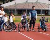 (写真:子どもたちに大人気だった「ハンドバイク」) その後、体育館ではロンドンパラリンピックでベスト4進出を果たした日本代表メンバーによるウィルチェアラグビー体験教室が、フットサルコートでは元プロ野球選手たちによる野球教室などが行なわれた。陸上競技場で行なわれたハンドサイクル体験教室では、オートバイクのような手漕ぎ自転車「ハンドバイク」に子どもたちが大はしゃぎ。用意されたハンドバイクには行列ができ、乗り終わると「気持ち良かった!」と目を輝かせていた。
