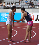 (写真:100分の1秒差の紫村<左>と木村) 400メートルでは、ニューヒロインが出現した。前日の予選で高校新記録を叩き出し、全体1位で通過した杉浦である。この日の決勝は、順位を意識せず、「今持ってる力を出し切ろう」と無欲で臨んだ。最終コーナーを前にトップに立つと、その余勢を駆って、オリンピック出場経験のある千葉麻美、青木沙弥佳(ともに東邦銀行)から逃げ切った。予選を上回る52秒52は、日本ジュニア新記録で日本歴代2位だ。「これだけいい記録が出ると、まわりから期待されてしまう。自分は自分だという気持ちで、上に行きたい」。この日が、18歳の誕生日の杉浦が、自らの勝利で祝った。スーパー高校生の今後が楽しみである。