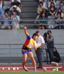 (写真:「ダラダラした試合運びだった」と悔いた村上) 王者の表情が曇ったままなのは、もうひとつ理由があった。2位のディーンが78メートル73と低調な記録に終わったことだ。ロンドン五輪9位の若武者は、世界選手権の派遣標準記録を突破できなかった。「できれば3人で行きたかった」と、第一人者は歯がゆい気持ちを口にした。ディーンに対しては、「僕と違って、まだまだ若い。世界へ羽ばたくチャンスはある」となぐさめた。だが、その沈痛の面持ちは、ライバルの不振を嘆いているようでもあり、ディーンの投てきを引き上げられなかった自分を責めているようでもあった。