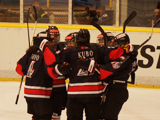 (写真:険しい表情で試合を見つめる飯塚監督) 仮想ロシアという位置付けだったチェコ戦は、「勝たなくてはならない試合で負けてしまった」という飯塚監督の言葉に尽きる。指揮官は「大きなミスはなかったが、最後まで質の高いプレーができなかった」と肩を落とした。大きくクリアすべきところで、無理につなごうとしてパックを奪われるなどミスが目立った。失点につながる決定的な過失はなかったが、状況判断という点でゲームマネジメントの稚拙さを覗かせた。キャプテンの大澤は、さらに精神面の問題を指摘した。「FWもDFも1対1でハードに戦えなかった。パワーで劣っていたわけではなく、気持ちが甘かった」。世界の強豪は、小さなスキも見逃さない。本番前にそれを身を持って体感できたことを吉ととらえるべきだろう。