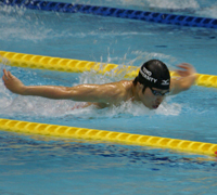 (写真:バタフライでの100メートルは日本記録を1秒近く上回るペース) さらに加速し、完全にひとり抜け出した。背泳ぎを終えた時点では世界記録に迫るペースで泳ぐ。もう勝敗ではなく萩野のタイムがこのレースの焦点となった。平泳ぎに入り、少しペースは落ちたが、それでもラストの自由形を残した時点でも日本記録は上回っていた。しかし、最後の踏ん張りどころのクロールで「しんどかった」とバテて伸びなかった。ゴールタイムは4分7秒88と、自らが持つ日本記録には0秒27及ばないものだった。