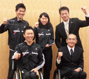26日、日立ソリューションズ本社(東京都品川区)のスキー部・車いす陸上競技部「AURORA」の激励会が行なわれ、次のパラリンピックを目指す選手たちが活動報告および今シーズンにかける思いを語った。来月から本格的にシーズンがスタートするスキー部では、2018年平昌パラリンピックを目指す新田佳浩(クロスカントリー立位)、阿部友里香(クロスカントリー・バイアスロン立位)が、今年2月(14〜18日)にアジア初開催となるW杯旭川大会での活躍を誓った。また、今年からコーチに就任したのが、現役時代は長野五輪に出場し、ソチ五輪ではクロスカントリースキーのナショナルチームを指導した長濱一年だ。荒井直樹監督とともに、新田、阿部の指導にあたっている。一方、今年3月のソチパラリンピックで銅メダル(バイアスロンショート座位)を獲得した久保恒造は、4月から陸上に専念している。来年1月から始まる16年リオデジャネイロパラリンピックの選考レースに向けての意気込みを語った。