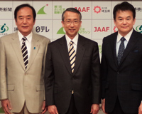 (写真:主催者を代表して会見に出席した埼玉県の上田知事、日本陸連の横川会長、さいたま市の清水市長)