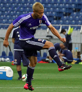 (写真:トップ下で起用されそうな香川(中央)は試合に向けて「高い位置を意識した」と話した)