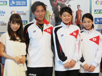 9月に開催される世界バドミントン連盟(BWF)公認のスーパーシリーズ(SS)「第34回ヨネックスオープンジャパン2015」の記者会見が9日、東京・岸記念体育館で行われた。一五輪、世界選手権に次ぐ権威を誇るSSにおいて、年間12試合のうちのひとつがヨネックスオープン。その大会で一昨年は女子シングルスで山口茜(勝山高)が、昨年は女子ダブルスで高橋礼華&松友美佐紀組(日本ユニシス)が優勝する快挙を成し遂げた。それに続けとばかりに男子シングルスの桃田賢斗(NTT東日本)は「毎年違う種目で日本勢が優勝している。今年は男子シングルスに運が回ってくるんじゃないかと思って、優勝を狙っていきたい」と抱負を語った。会場は東京体育館で9月8日から13日までの6日間行われる。