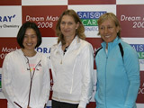 (写真:3月15日、有明コロシアムにて行われた「ドリームマッチ2008」にて。往年の名テニスプレーヤー、(左から)伊達、グラフ、ナブラチロワ)
