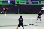 結果はシングルス、ダブルス全て1セットも奪うことができず、3−0での完敗だった。しかし、新人の植木選手はプロの増田健太郎選手を相手に、1セット目はタイブレークにまでもちこむ接戦を演じ、大健闘を見せた。