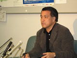 (写真:会見に臨んだ田嶋専務理事) 本日の昼過ぎに到着したオシム監督の長女イルマさんに「事情を初めから説明して、質問を受けていた」という田嶋理事は会見場に1時間半遅れて到着。「(オシム監督の)意識はない。昨日と変化はなく、今までと同じ状況と考えてください」と語り、昨日の会見と同じく「家族と病院が話し合い、『これだけなら出してもいい』という情報を話している。医療的な質問には答えられない」として、オシム監督の病状については上記のドクターの所見のみを語るにとどまった。