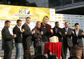 「K-1 WORLD GP 2007 FINAL」(12月8日、神奈川・横浜アリーナ)の直前記者会見が7日、東京・フジテレビ社屋前のイベントスペースにて一般公開で行われ、決勝トーナメントに勝ち残った8名のファイターが、会場に集まった約2000人のファンの前で、大会に受けての意気込みを語った。