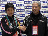 (写真:中村選手と天満屋の武富監督) レース後、中村は「30キロ過ぎでレースが動くところまでは、何があっても余裕を持って走ろうと思った。坂を上り終わってちょうど堀江さんが前に出て、後ろにもあまりいなかったので、駅伝の10キロと思って切り替えていこう、と。残り5キロで、(2時間)26分を切られるか分からなかったが、とにかくペースを上げていこうと思った。目標だった名古屋のレースを走れて幸せ。優勝できたのはチームのみんなのおかげ。本当に嬉しい」と爽やかな笑顔を見せた。