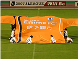 試合直前、スタンドから歓声があがった。9月23日、愛媛県総合運動公園、J2第41節、愛媛FC対アビスパ福岡戦。「伊予銀行サンクスデー」と銘打って行われた試合で、巨大なユニホームがピッチ上に登場したのだ。昨年に引き続いて行われたこのイベントの模様を今回はレポートしたい。